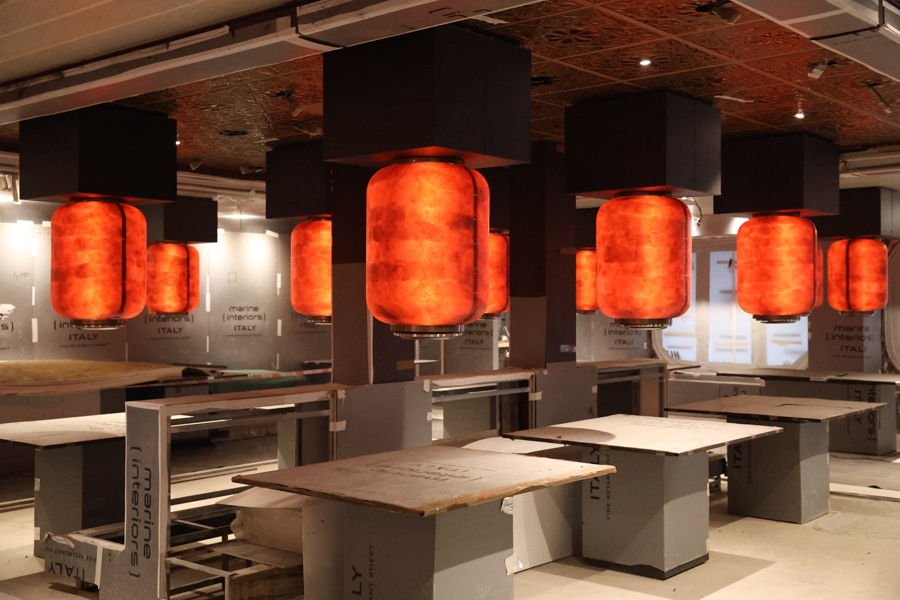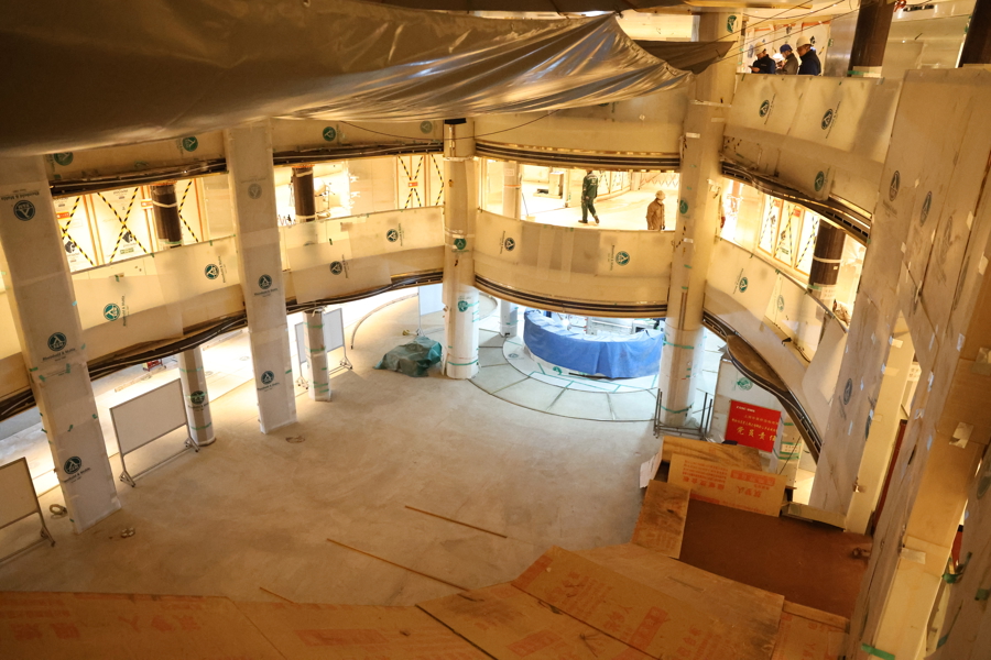 2月27日,记者进入“爱达·花城号”内部看到,其内装工程的完成度已经比较高,公共区域、客房等已初具雏形。